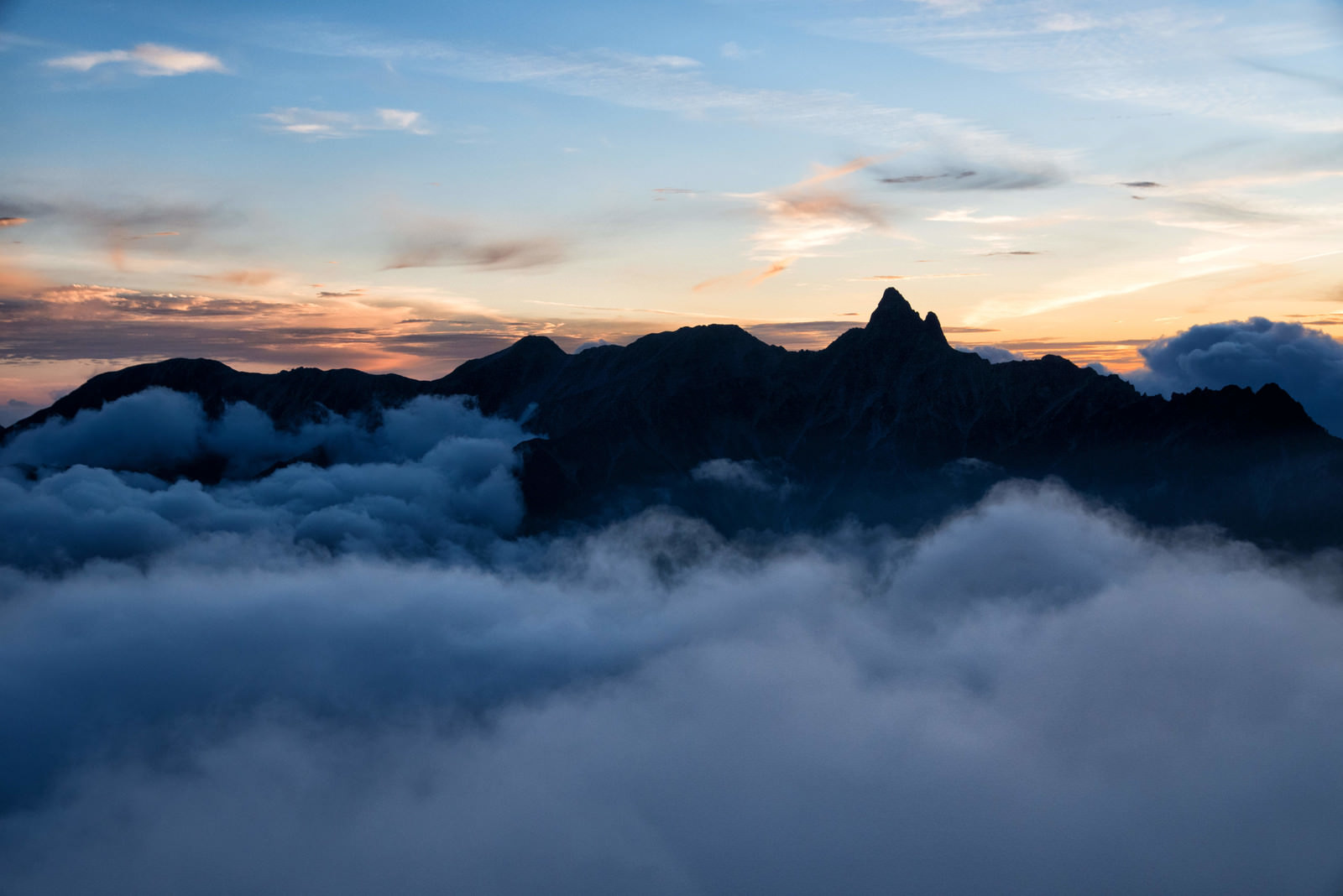At dawn, a sea of clouds fills the valleys, inviting a sensation of walking through a dream.