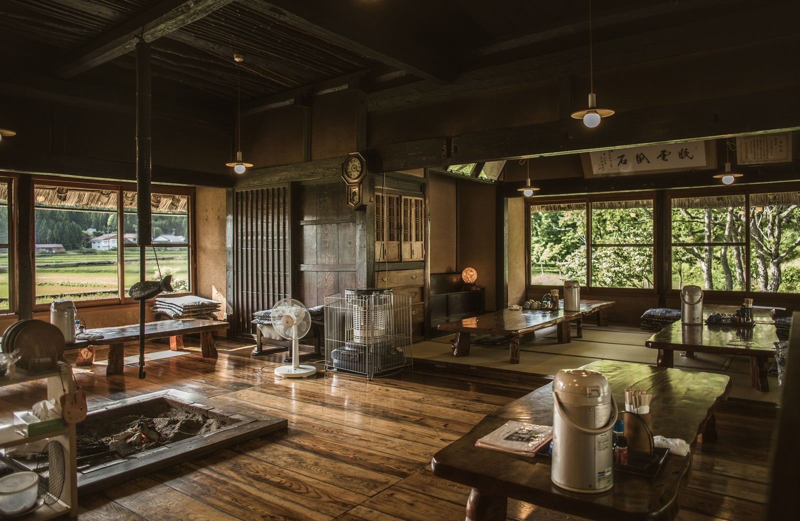 An old farmhouse nestled in the mountains holds the warmth of wood and human memory,
